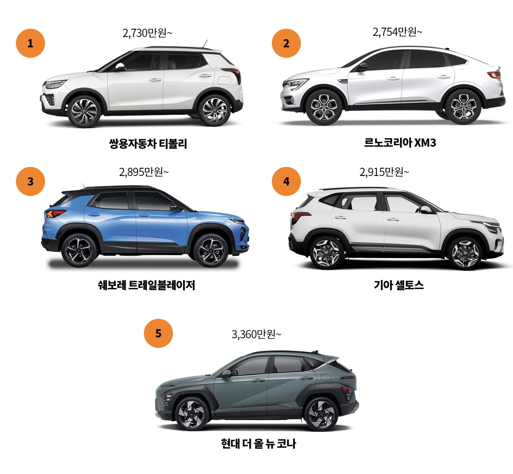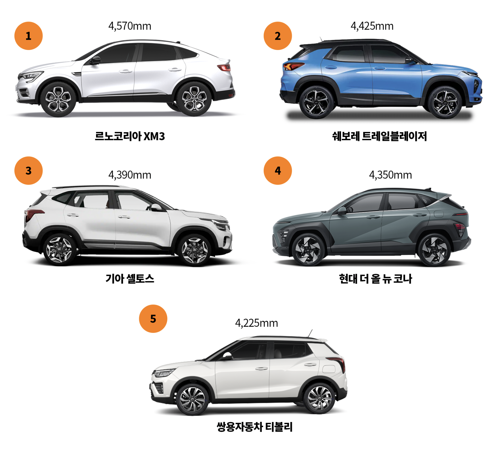 기아 셀토스가 4,390mm 로 3위