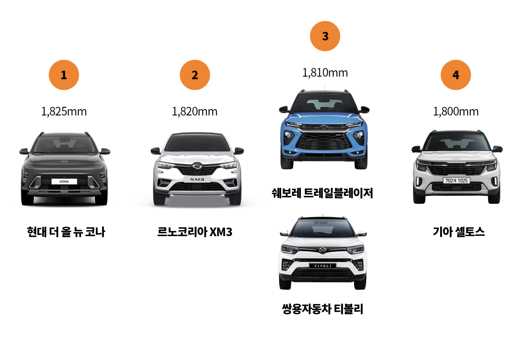 기아 셀토스가 1,800mm 로 4위