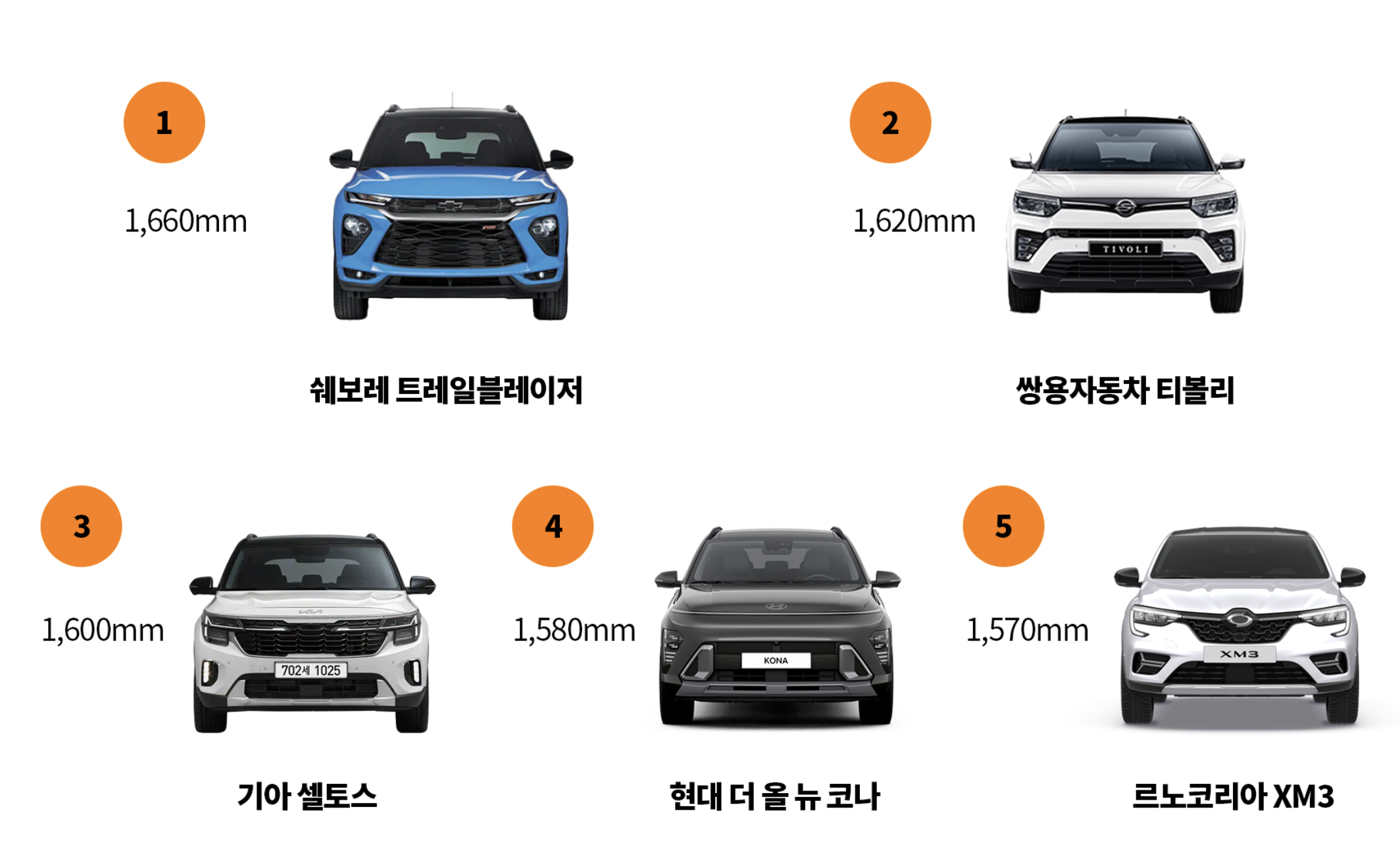 르노코리아 XM3가 1,570mm로 4위