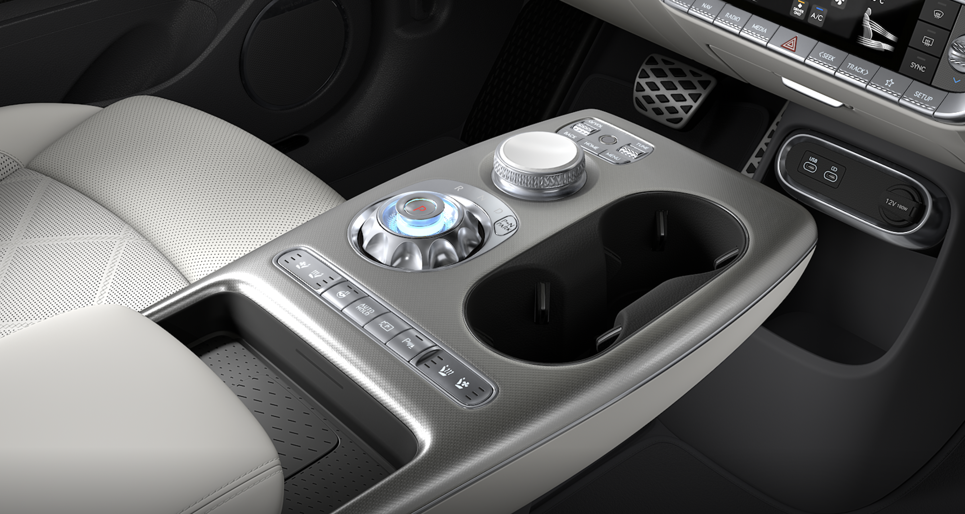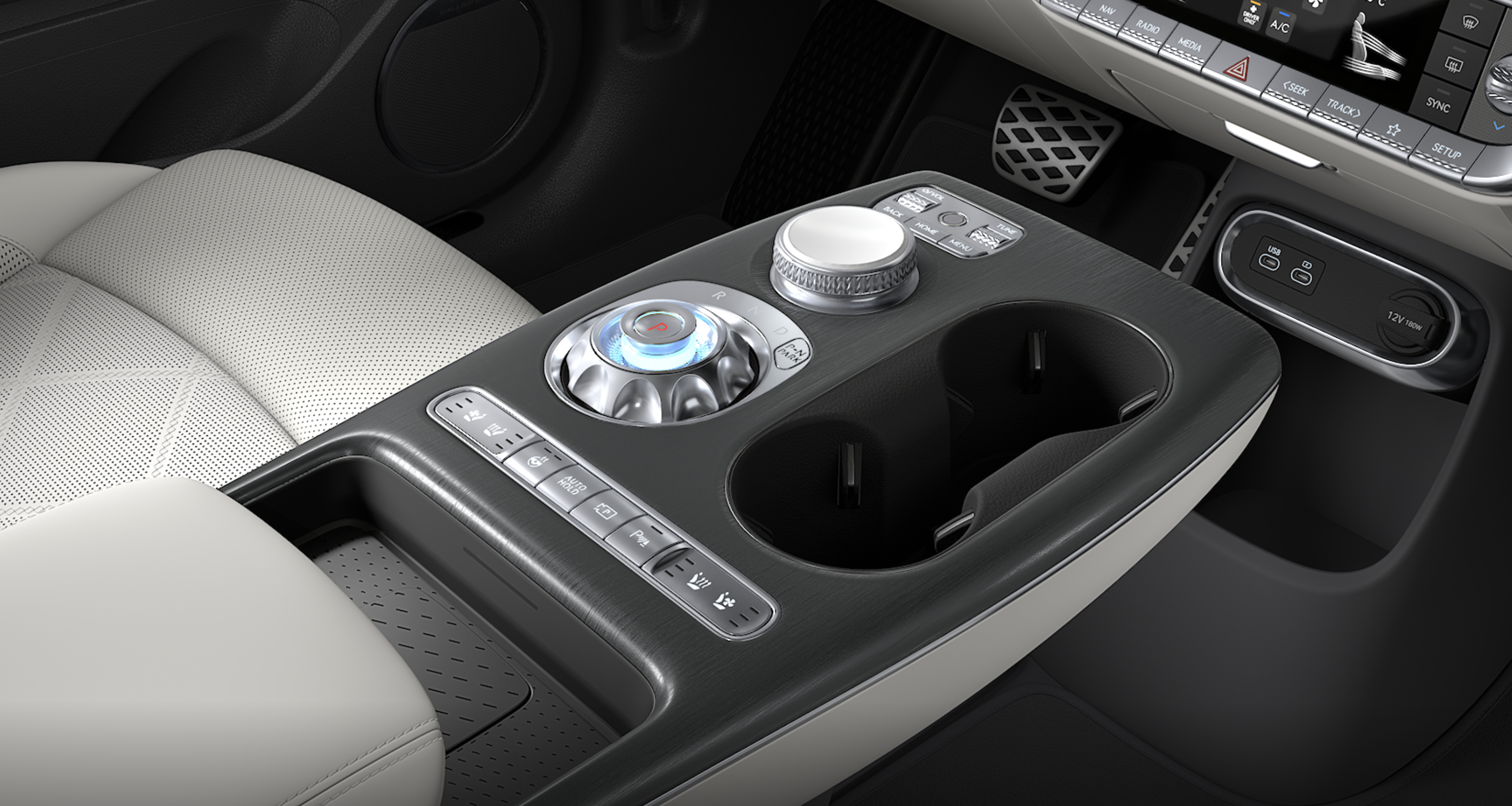 컵홀더 두개, 무선충전패드도 보이네요.