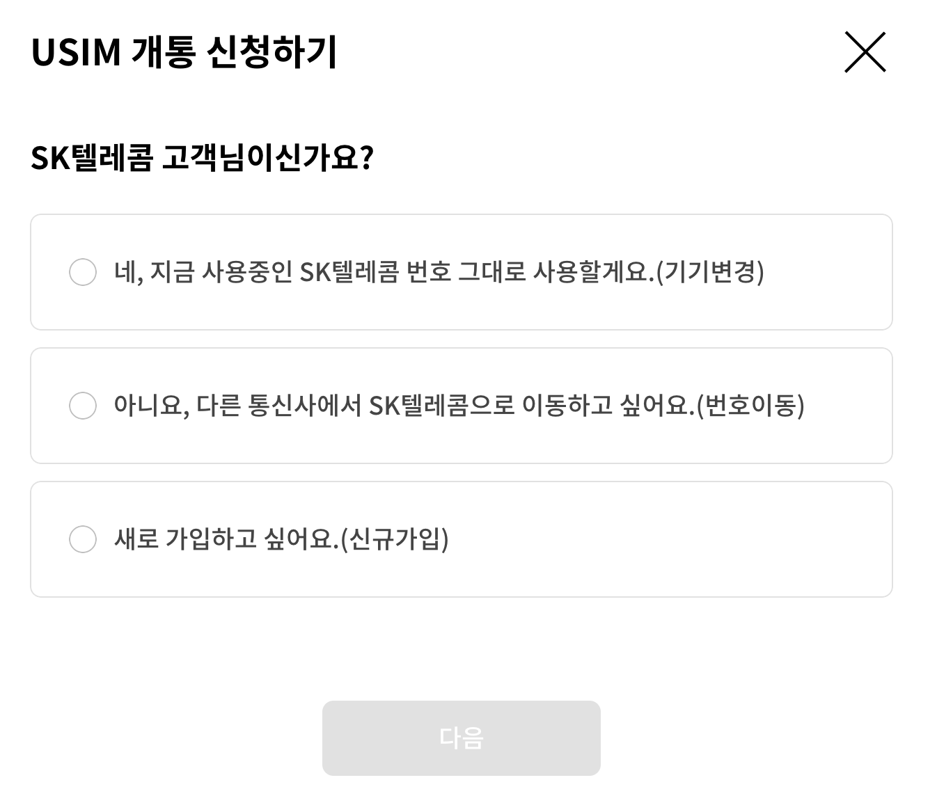 기기 변경으로 유심 변경도 선택 가능할 겁니다.
