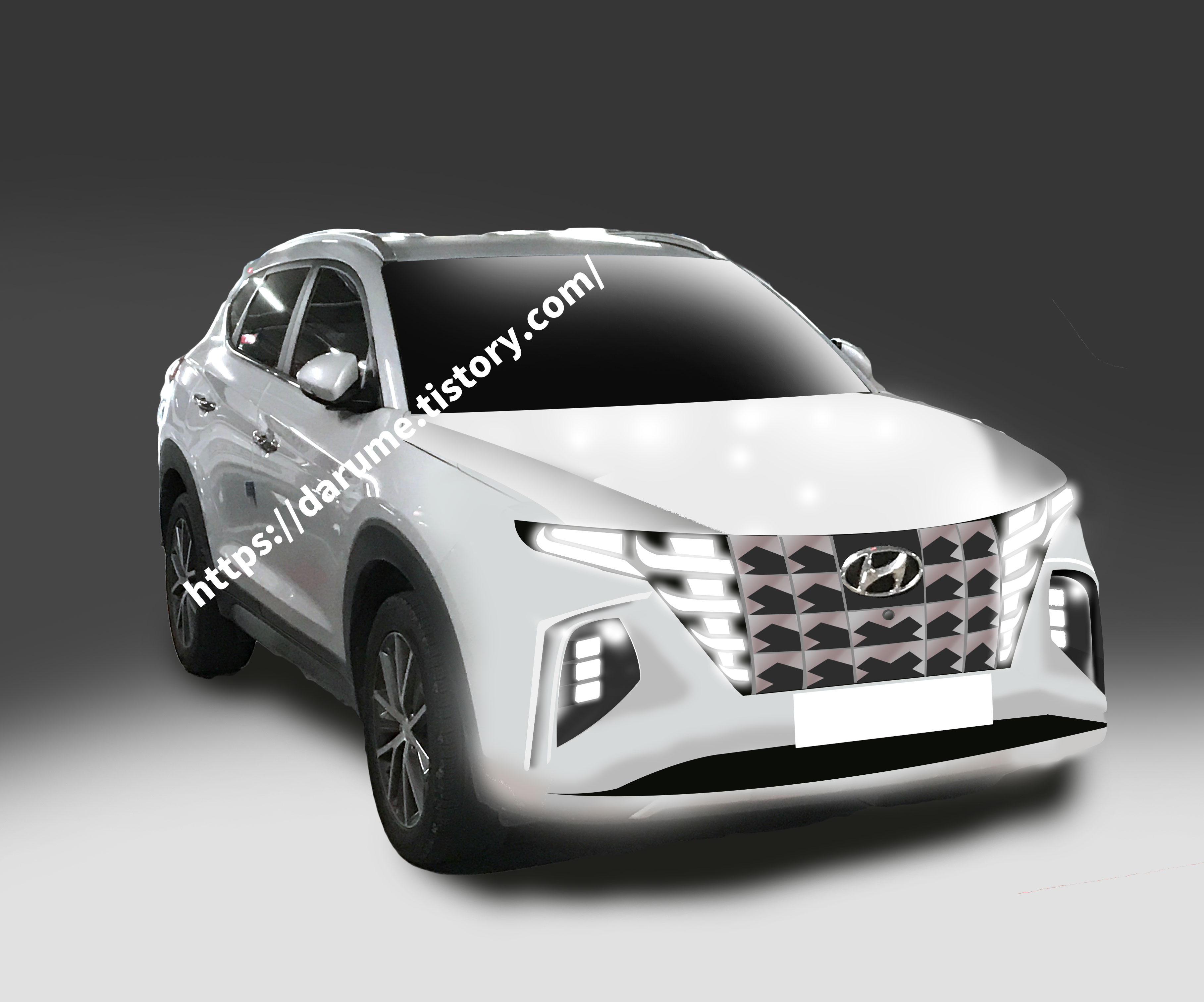 2020 풀체인지 신형 투싼 전면 부분 두번째 예상도! 방향지시등, 헤드램프 부분 및 범퍼 부분 디테일 추가 예상도